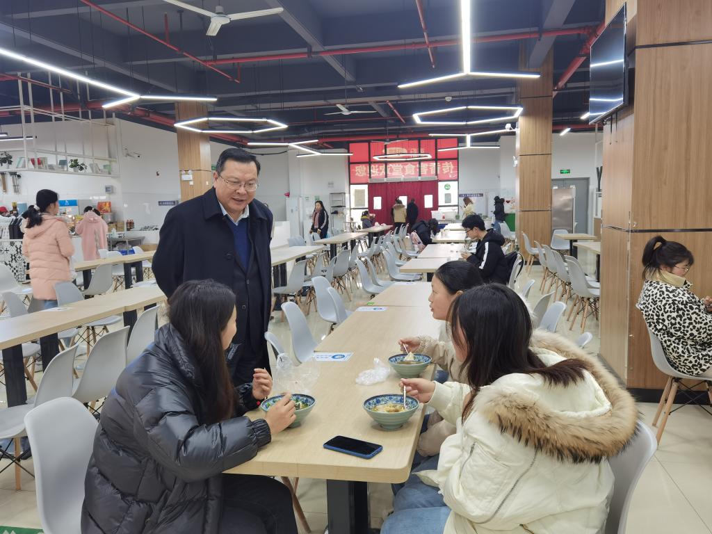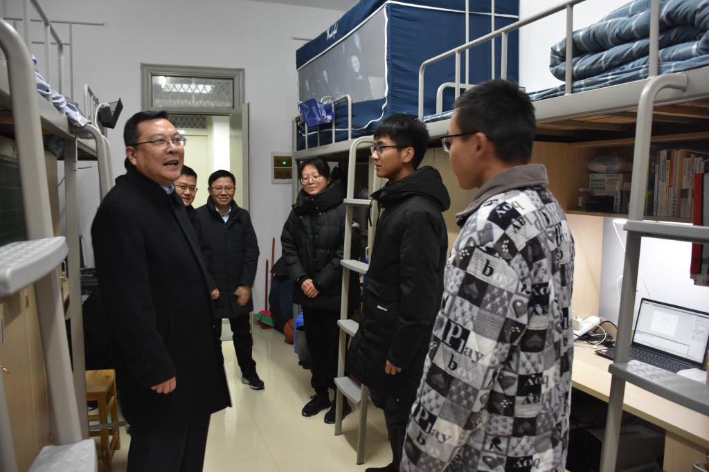 徐成钢一行先后看望慰问了在滨湖校区驻值工作的辅导员、授课教师及后勤服务工作人员,并深入寝室、图书馆、食堂等地,走入学生生活学习中,送上满满的关爱和祝福。