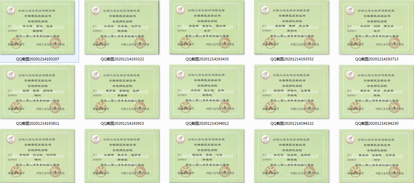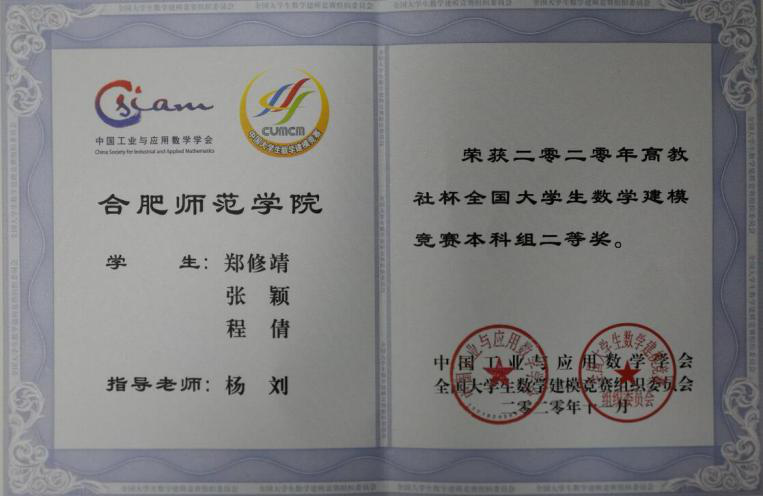 本网讯 近日,2020年高教社杯全国大学生数学建模竞赛结果正式揭晓,我校来自数学与统计学院、电子信息与电气工程学院、物理与材料工程学院、计算机学院、经济与管理学院35支队伍共105名同学参加了本次竞赛。12月5日,竞赛颁奖典礼在同济大学隆重举行,我校师生在竞赛中取得了优异成绩,共获得全国二等奖1项,安徽省一等奖1项、二等奖2项、三等奖13项。学校连续两年获评该项赛事国家级奖项,获奖队数连续两年翻番。