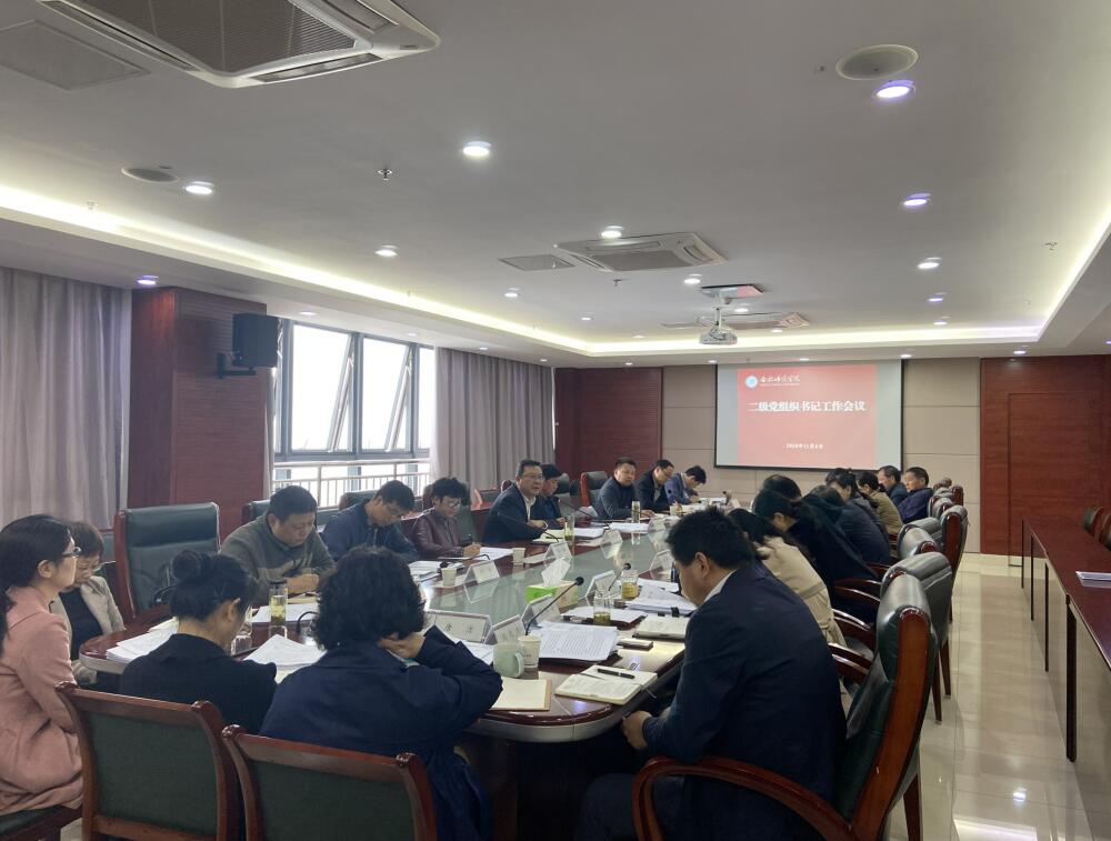 本网讯 11月6日上午,学院在锦绣校区行知楼第二会议室召开二级党组织书记工作会议,部署推进近期基层党建工作。院党委书记徐成钢出席会议并讲话,各二级党组织书记,组织部、宣传部、学生工作部、保卫处等部门负责人参加会议。会议由院党委副书记吴昕春主持。
