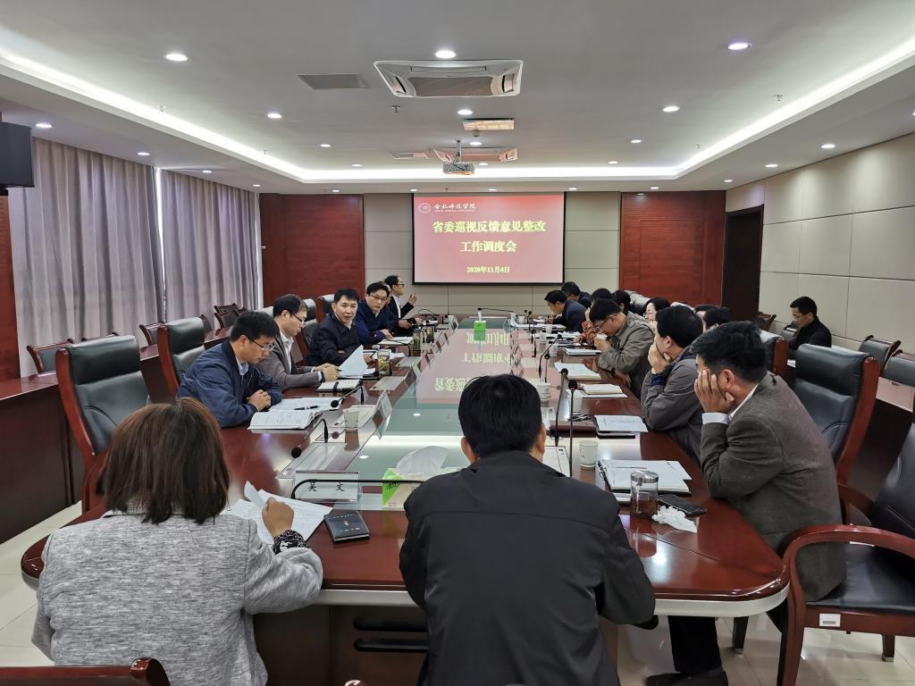 本网讯 根据党委工作安排,11月4日上午,学院在锦绣校区行知楼2008会议室召开省委巡视反馈意见整改工作调度会,党委委员、纪委书记徐文林出席会议并讲话,相关牵头部门主要负责人参加会议,会议由办公室(巡视整改办)主要负责人主持。