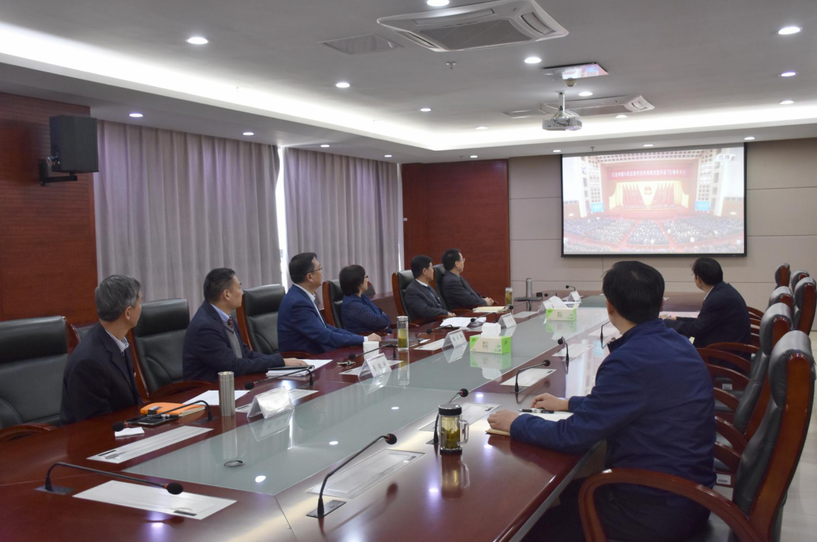 院领导徐成钢、方东玲、李进华、吴昕春、谢阳群、曹卓良和相关部门主要负责同志一起集中观看了大会盛况,聆听习近平总书记重要讲话,铭记历史、砥砺前行。