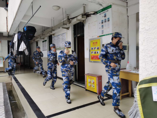 下午2:00,一阵“火灾警报”响起,新生们迅速集合,用沾湿的毛巾捂住口鼻,在教官、辅导员、保卫处干部、宿管老师等指挥下有序撤离“火场”,来到安全区域。整场演练过程中,大家态度认真,现场紧张有序。