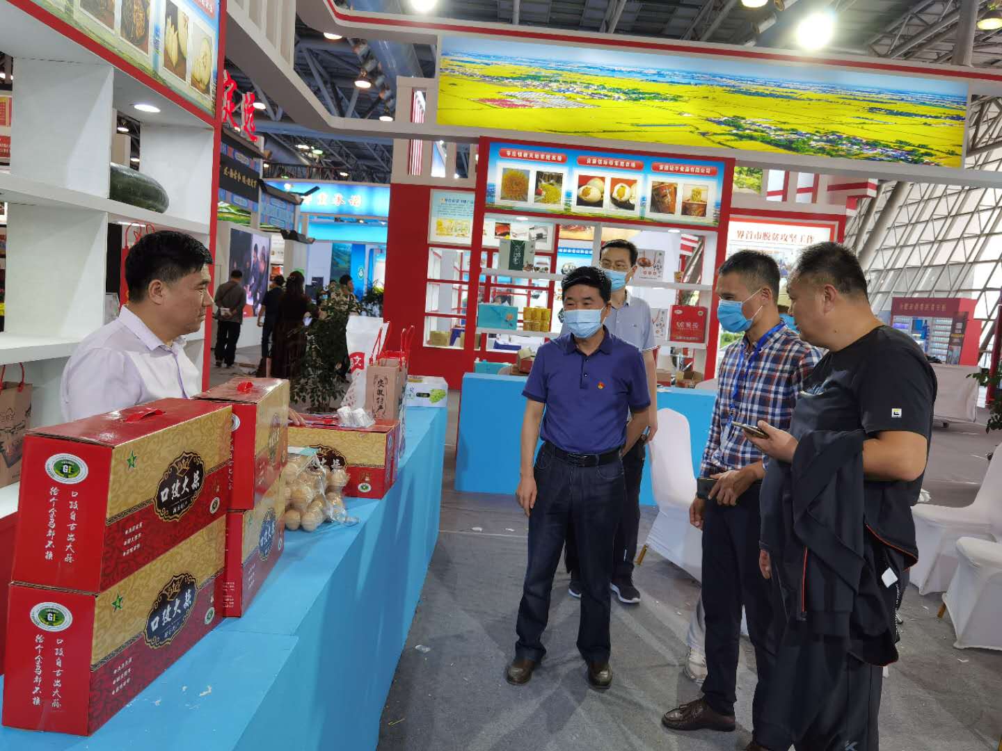 参展期间,吴昕春驻足我校定点帮扶阜阳市颍东区成果展位,详细了解扶贫情况和产品介绍,与颍东扶贫办干部和相关企业负责人进行交流。活动现场,展台前人头攒动,气氛热烈,来自扶贫点的土鸡蛋、香菇、粉丝等农副产品整齐摆放,为前来参与活动的人员提供一个品种多样、品质上乘的地方农特产品“选购大集”。面对种类丰富、“土味儿”十足农产品,广大党员干部职工根据各自需求积极购买,以实际行动助力脱贫攻坚。