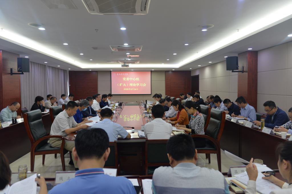 本网讯 9月24日上午,学院举行党委理论学习中心组扩大会议,深入学习宣传贯彻习近平总书记考察安徽重要讲话重要指示精神,传达中国共产党安徽省第十届委员会第十一次全体会议精神,部署贯彻落实工作。党委书记徐成钢主持会议并讲话。党委理论学习中心组成员出席会议,各院系级党委(党总支)、直属党支部书记,各学院院长、各部门主要负责人参加会议。