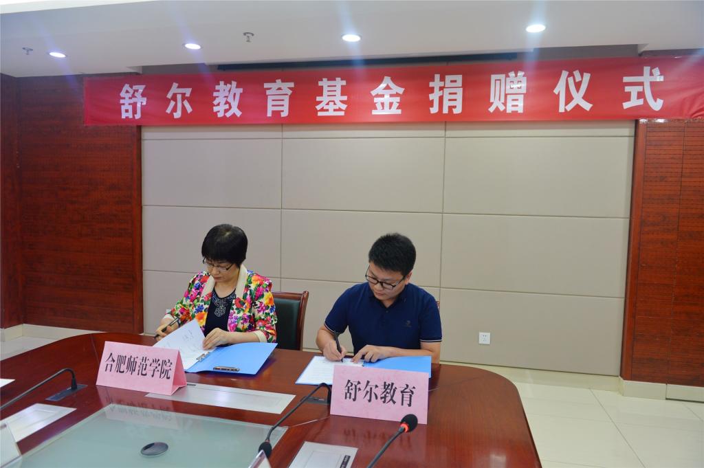 在一片热烈的掌声中,方东玲、田冬冬分别代表beat365唯一官方网站、舒尔教育科技(合肥)有限公司共同签订了“舒尔教育基金捐赠协议”。