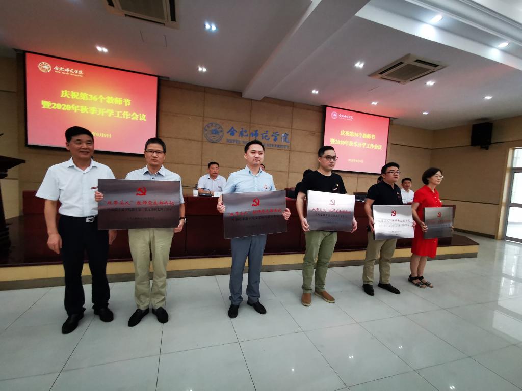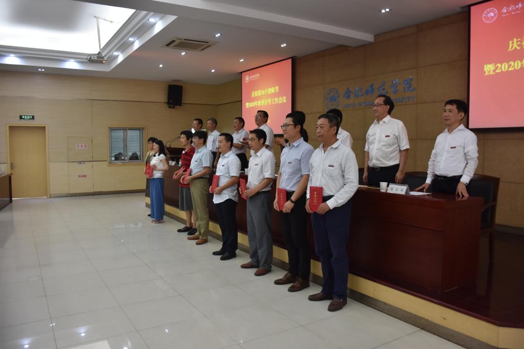会上,李进华为教龄满30周年(女满25周年)教师颁发纪念证书;吴昕春为首批“双带头人”教师党支部书记工作室授牌;姚本先宣读了表彰2020年“江博杯”“学陶师陶——三育人”先进个人的决定;全体院领导为受到表彰的先进个人颁奖。