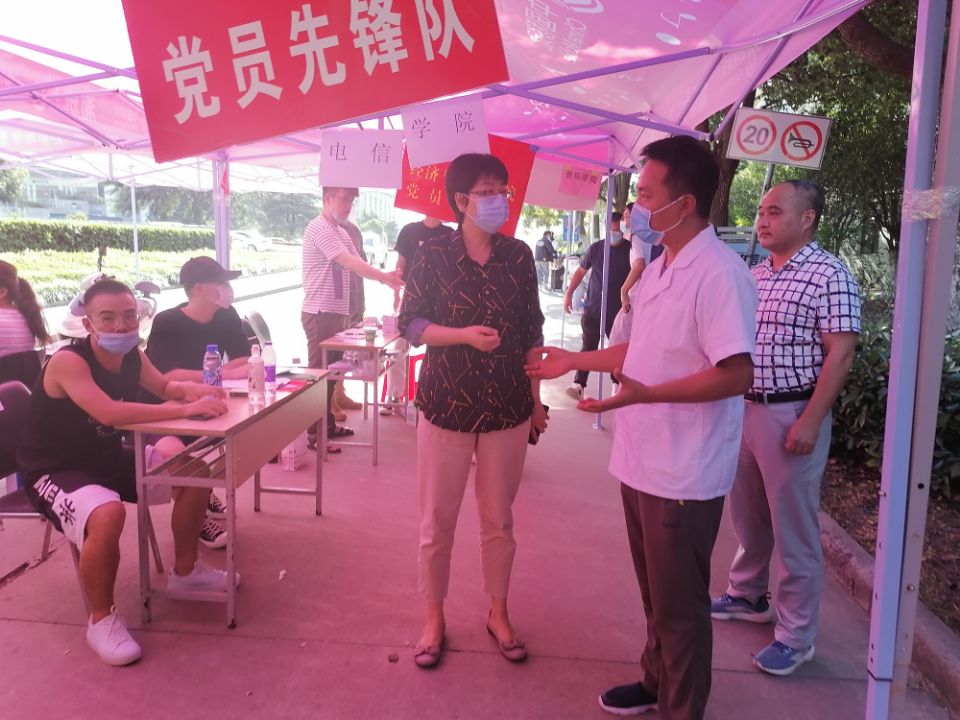 本网讯 9月3日为我院老生集中返校首日,为确保学生返校复学和常态化疫情防控工作有序进行,党委副书记、院长方东玲在相关部门负责人陪同下深入锦绣校区门卫岗亭、食堂、学生公寓、水房等地,对学生开学返校后的后勤保障、公寓管理、食品安全等情况进行检查。