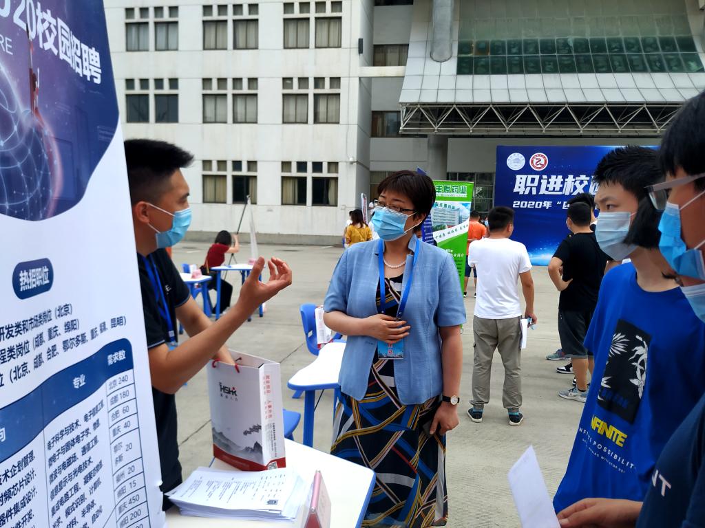 启动仪式后,院领导和与会领导嘉宾巡视了对接会现场,同用人单位亲切交谈,详细询问企业发展状况、岗位需求,感谢他们冒着酷暑深入校园开展现场招聘;与毕业生深入交流,关切询问他们的求职意愿和求职进展,鼓励参会毕业生主动展示、抓住机会、实现就业。