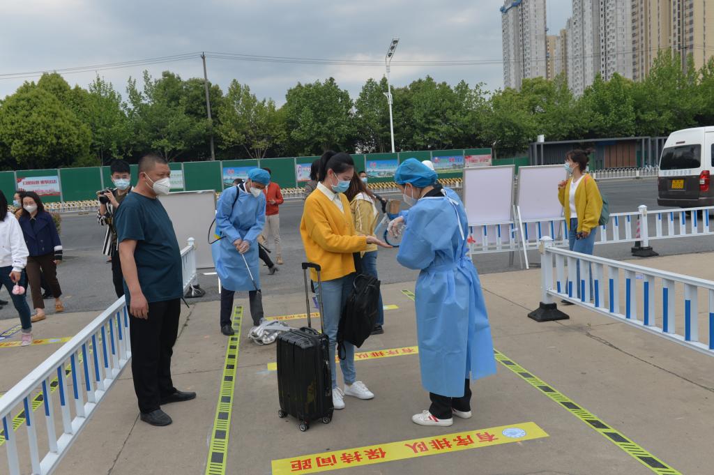 本次演练分为学生返校报到日某学生出现体温异常和返校后学生在宿舍出现体温异常两个场景。场景一由31名辅导员扮演返校学生、家长和教师等角色,体温正常学生凭学生证(校园一卡通)、安康码有序通过测温通道,并经后勤处人员专业消毒、二级学院资格复查后入校;体温异常学生由校医院医务人员在临时留观点复测体温后,登记信息并转介至定点医院,学生情况逐级上报。保卫处处长周荣就返校当天校门管理及报到流程进行汇报。