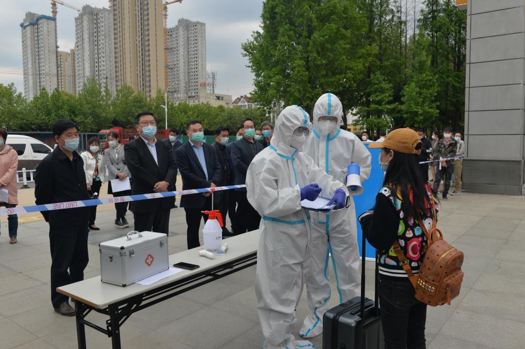 本网讯 4月27日下午,学院在锦绣校区组织开展2020年春季学期学生返校应急处置模拟演练。党委书记徐成钢,党委副书记、副院长李进华,党委副书记吴昕春,副院长谢阳群,副院长姚本先,副院长曹卓良,纪委书记徐文林,学院疫情防控工作领导小组相关职能部门负责人,二级学院分党委(党总支)书记、副书记到场观摩,办公室、学生工作处、后勤处、保卫处工作人员和全体辅导员100余人参与演练。