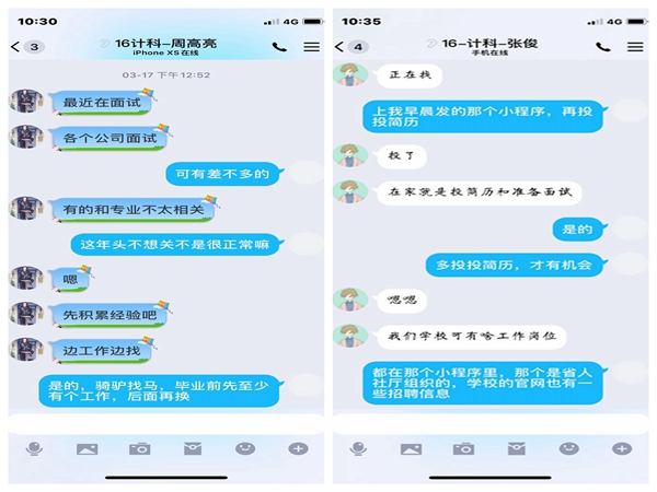 广泛宣传就业信息,提升学生参与热情。学院通过学校就业创业工作网、安徽省大学生就业服务平台、大型招聘网站等多种渠道广泛收集就业信息,及时在班级群内发布,激发毕业生求职热情,引导毕业生广泛参与求职。截至目前,学院毕业生通过各种网络渠道参与求职率接近90%,其中在安徽省大学生就业服务平台上参与春季网络招聘会、投递简历总数占毕业生总人数的136%。