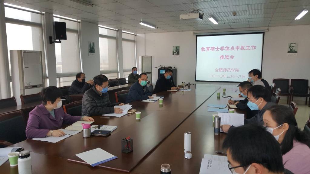 本网讯 3月18日,我院在教师教育学院会议室举行教育硕士学位点申报工作推进会,会议由副院长姚本先教授主持。教师教育学院、文学院、外国语学院、数学与统计学院等二级学院主要负责人就前期学科专业建设情况进行了汇报研讨,相关学术带头人、骨干教师等参加了会议。