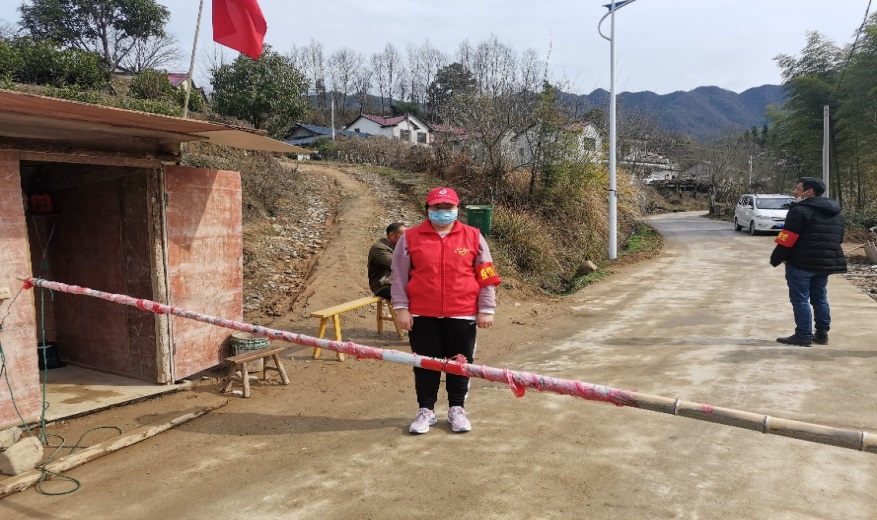 晨光熹微,2019级化学(师范)班的陈倩早早起床,戴着口罩,穿着防护服,来到宣城市泾县汀溪乡红岭村村口,测量外来人员体温,记录外来车辆信息,宣传防疫知识,提醒行人戴口罩。