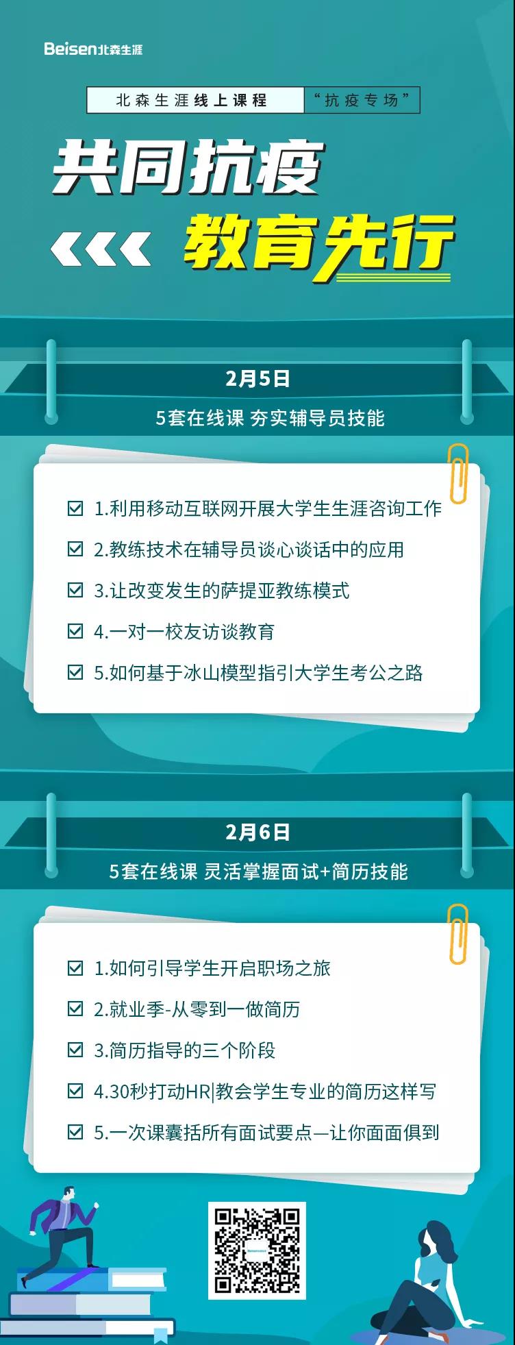 就业创业工作处还组织职业生涯规划教研室、就业指导与创业教育教研室的授课教师们在线学习北森生涯“抗疫专场”名师精品课程。大家在抓好疫情防控信息报送的间隙,先后学习了《利用移动互联网开展大学生生涯咨询工作》《教练技术在辅导员谈心谈话中的应用》《如何基于冰山模型指引大学生考公之路》《如何引导学生开启职场之旅》等10门课程。通过学习,化解了疫情给自身工作带来的困扰,有利于更好地对部分学生出现的恐慌和焦虑等心理进行科学指导,确保就业指导精准有效。
