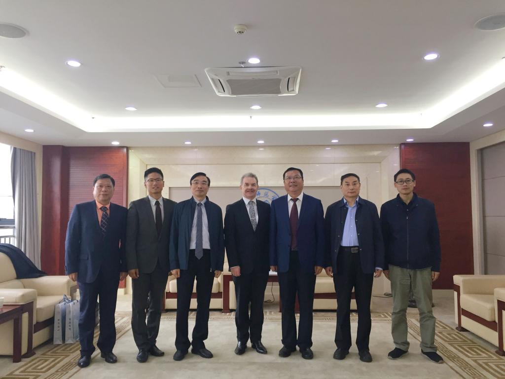 本网讯 10月16日,爱尔兰阿斯隆理工学院校长卡荣·欧·凯恩教授一行来访我院。院党委书记徐成钢教授,党委副书记、院长孙道胜教授,党委副书记、副院长李进华教授热情接待了凯恩一行。