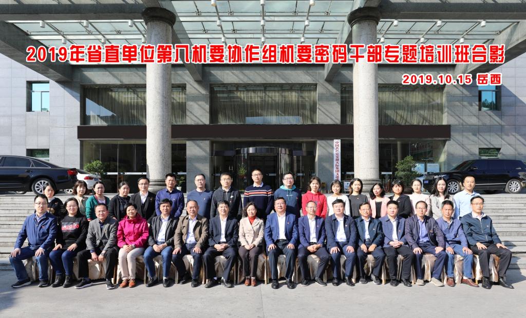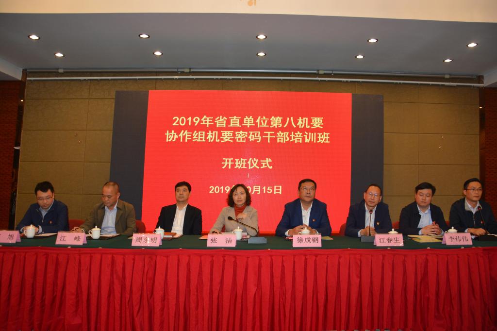 本网讯 为深入学习贯彻习近平新时代中国特色社会主义思想和党的十九大精神,全面提升新时代机要密码干部政治素养和业务能力,10月15-16日,我院作为组长单位主办的2019年省直单位第八机要协作组机要密码干部培训班在岳西县委党校顺利举行。我院党委书记徐成钢,省委机要局副局长张洁,安庆市委常委、岳西县委书记周东明,岳西县委副书记、县长江春生,岳西县委常委、统战部部长、县直工委第一书记江峰,岳西县委常委、副县长李伟伟,省委机要局第八协作组联络员郭旭等出席开班仪式。省纪委办公厅、省委组织部、省委网信办、省残联、省应急厅、省地矿局、省农科院、大唐安徽发电、东方资产、东方航空、华安证券和我院等12家协作组成员单位全部派员参加。我校办公室、纪委办、组织部、人事处等单位涉密管理岗位工作人员也全程参训。