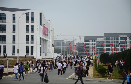 6日当天,滨湖校区气球飘飘、彩旗招展、花团锦簇、气氛热烈,各单位和部门各司其职、密切配合,迎新工作按照既定流程,有条不紊进行。在滨湖校区博学楼,各二级学院党政领导、辅导员、班主任和学生干部为新生办理报到、住宿、建立学籍档案等事务,并及时通知入学相关事宜。教务处、学生处、团委、财务处、后勤处均设有服务点,为新生提供咨询等服务。教务处在博学楼A102设立总协调与咨询室,统筹整个迎新工作;学生工作处在博学楼A106、B107设有“绿色通道”,为家庭经济困难新生办理助学贷款等事宜;团委在校区大门位置和博学楼内均设置了志愿者服务站;财务处在博学楼B102发放收费票据并为未线上缴费新生办理缴费手续;后勤部门在宿舍区为新生安排住宿,并为新生发放住宿用品。校医院在唯实楼提供医疗保障服务;学院在博学楼A108设立专门的家长休息室。阡陌物业公司在宿舍区设立了服务点,为新生和家长免费提供茶水。