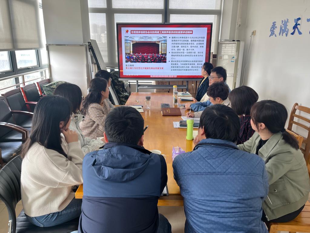 党课回顾了2023年全国“两会”基本情况,学习了习近平总书记在“两会”期间的重要讲话精神,十四届全国人大一次会议和全国政协十四届一次会议精神,并就落实全国“两会”精神,做好青年学生思想政治工作提出要求。(机关一党委团学党支部)