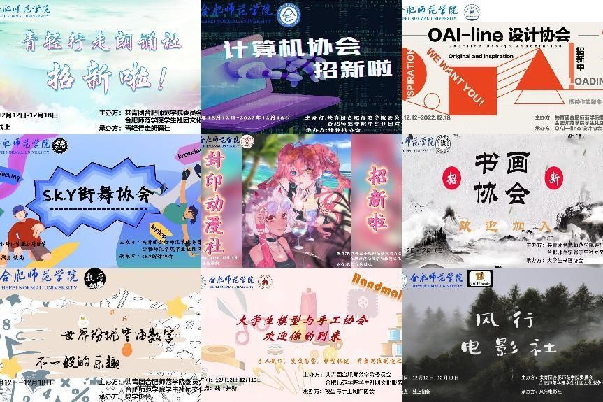本网讯 12月12日至12月18日,学院学生社团招新活动以线上形式顺利举办。此次“云”招新通过学生社团文化服务中心官方QQ和合师社服微信公众号(以下简称官Q和官微)进行招新宣传,共有4200余人次2022级新生加入学生社团。