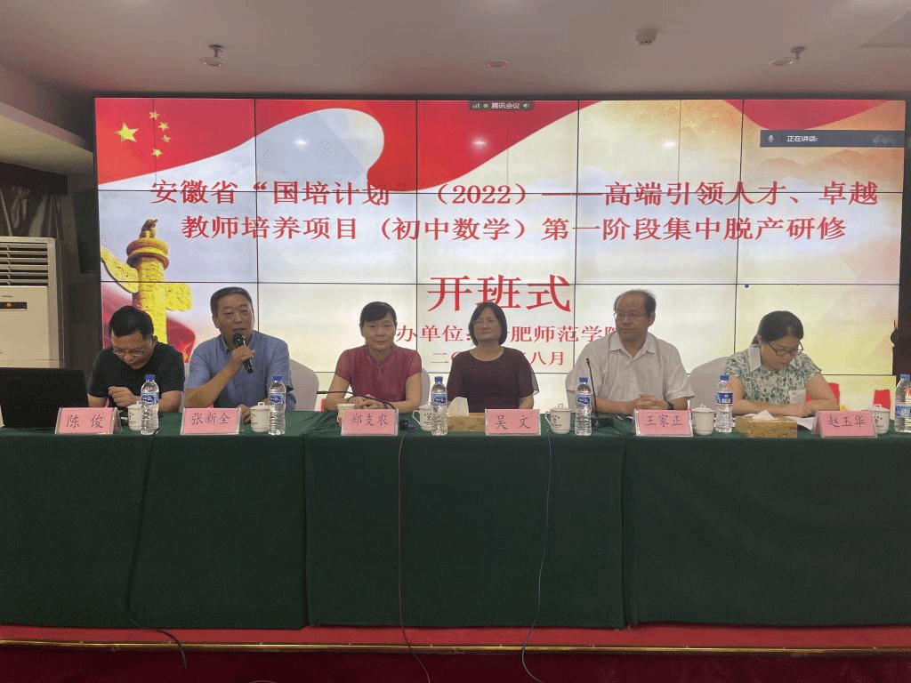 本网讯 “国培计划(2022)”——安徽省高端引领人才培养项目和合肥市初中数学卓越教师培养项目正式启动,8月2日上午在海悦花园酒店举行了线下开班典礼。出席典礼的有beat365唯一官方网站继续教育学院院长吴文,数学与统计学院党委书记郑支农、院长王家正,以及负责本次培训的张新全教授和班主任赵玉华老师、陈俊老师等,典礼由王家正院长主持。