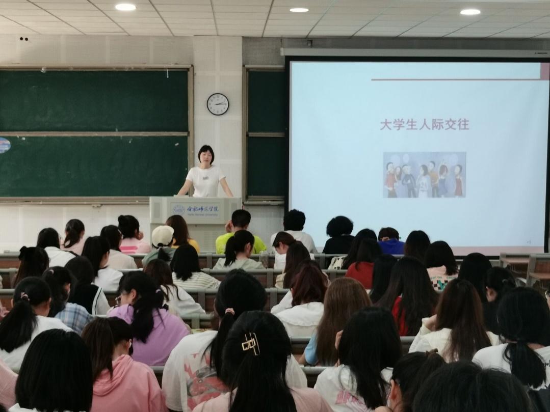 本网讯 为了普及心理健康知识,提高学生的心理健康水平和心理素质,5月24日下午,教师教育学院在博学楼D101举办“大学生人际交往”为主题的心理健康教育专题讲座。讲座邀请教师教育学院董丹丹老师主讲,滨湖校区20级和21级学生参加。