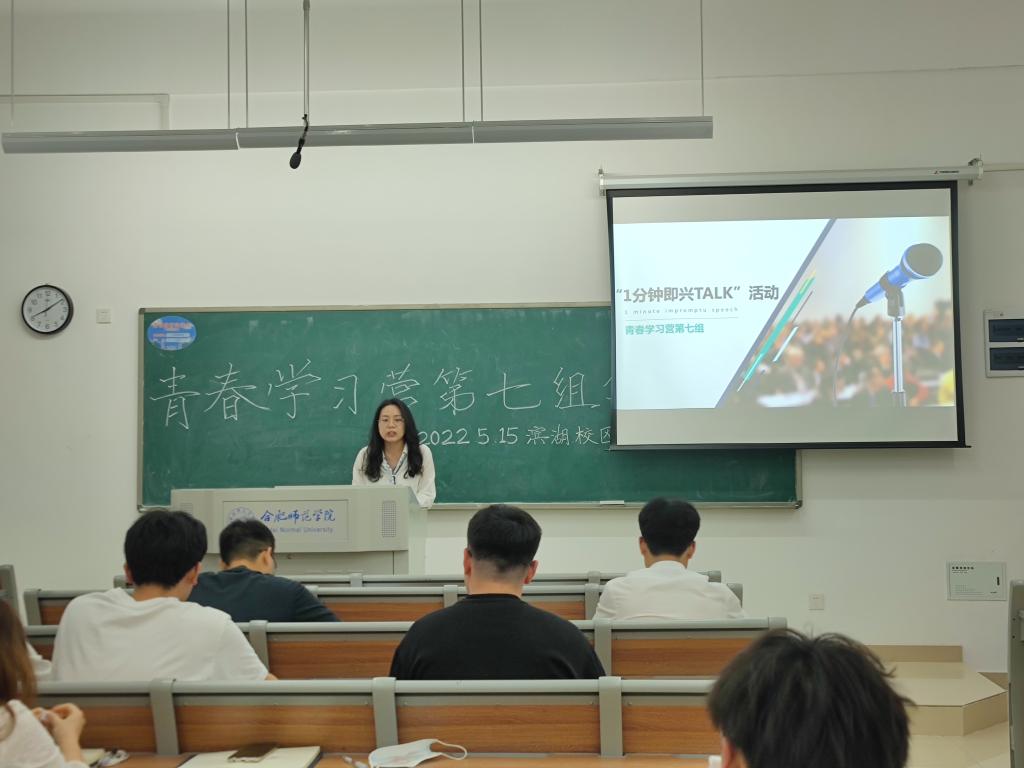 本网讯 为了进一步丰富校园文化生活,提升同学们的语言表达能力和逻辑思维能力,青春学习营第七组于5月15日晚在铭传楼B306室举办“1分钟即兴TALK”活动。本次活动由指导老师疏淑进主持,全体成员参加。