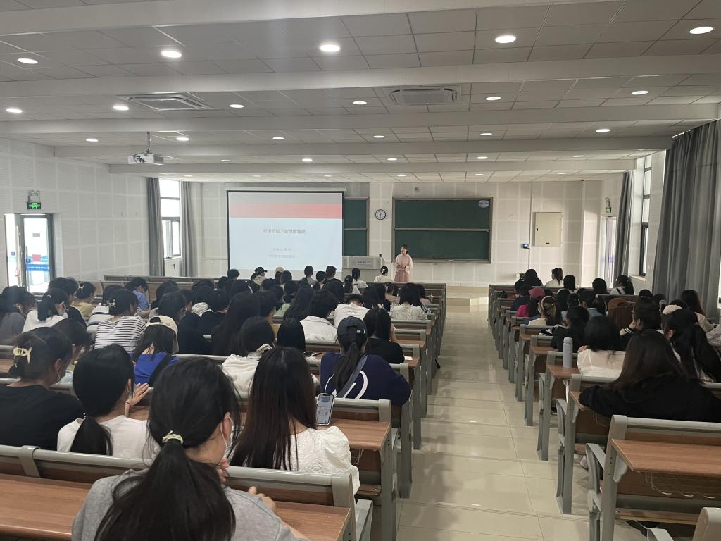 本网讯 为在疫情期间更好地关注我院学生心理健康,提升其人际交往能力,使其更好地适应疫情防控下的校园及社会生活。文学院于5月18日下午在滨湖校区博学楼A108开展心理健康专题讲座,邀请教师教育学院黄凤老师作为主讲人,以“疫情防控下的情绪管理与人际交往”为主题,旨在帮助同学们在疫情防控下正视消极情绪问题,健康有力地成长成才。