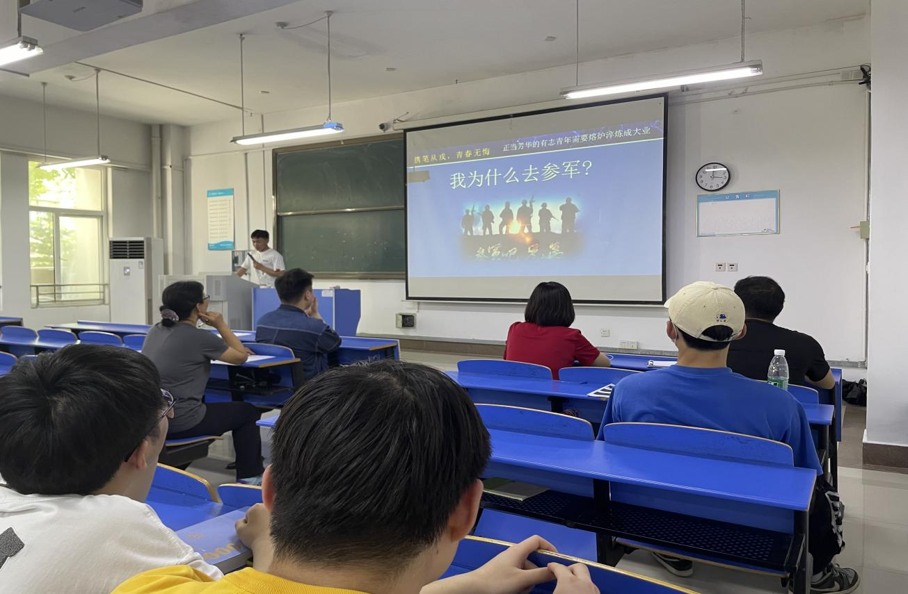 宣讲会上,钟洁老师为同学们讲解了大学生应征入伍的基本条件、报名及流程,详细介绍了大学生参军入伍后国家的资助办法和优惠政策,对同学们关心的大学生应征入伍可享有的优先考学提拔、学费报销、退伍复学和就业优惠等优抚、激励政策进行详细解读。
