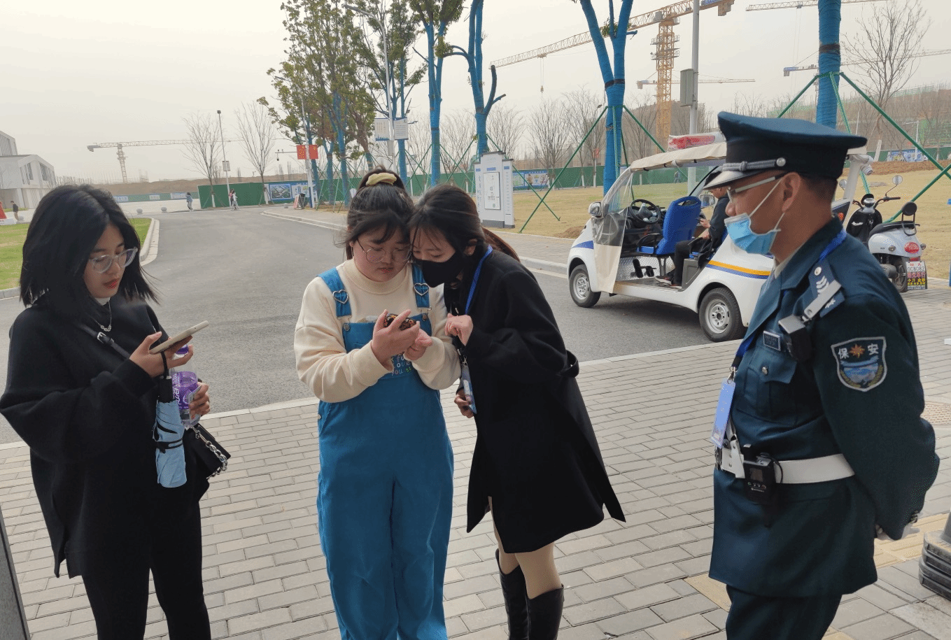安保劳动中,同学们响应防疫号召,认真负责配合保卫处审核请假外出学生进出校“双码”和假条。