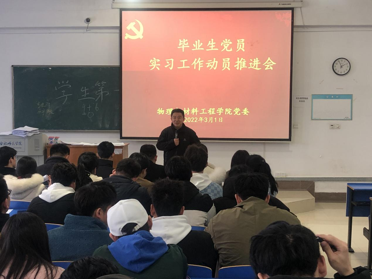 本网讯 为进一步推动毕业生就业创业工作,发挥毕业班党员模范带头作用,3月1日,物理与材料工程学院学生党支部开展以实习和就业创业为主题的毕业生党员主题党日活动。学院党委副书记吴震、毕业班辅导员吴梦云及全体2022届毕业生党员参加会议。