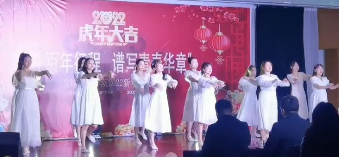 晚会伊始,穆娟代表学院为晚会致辞。她首先对学校党委、行政和相关职能部门对学院的关心和支持表示衷心的感谢,向到场的各位领导和师生们送上最诚挚的祝福。随后她总结和回顾了学院在过去一年里取得的成绩,对学院党建、专业建设、学风建设、三优创建等方面取得的优异成绩表达了衷心祝贺。同时她也对学院师生寄予新的希望,今年是一个特殊而又具有重大意义的年份,是党和人民胜利实现第一个百年奋斗目标、全面建成小康社会,正在向着全面建成社会主义现代化强国的第二个百年奋斗目标迈进的重大历史关头,希望全院师生能认真学习习近平总书记“七一”重要讲话精神,弘扬伟大建党精神,贯彻党的十九届六中全会精神,在新的一年里开好局,起好步,把握机遇,以全新的姿态迎接新年的挑战,为实现第二个百年奋斗目标、实现中华民族伟大复兴的中国梦作出新的更大贡献。