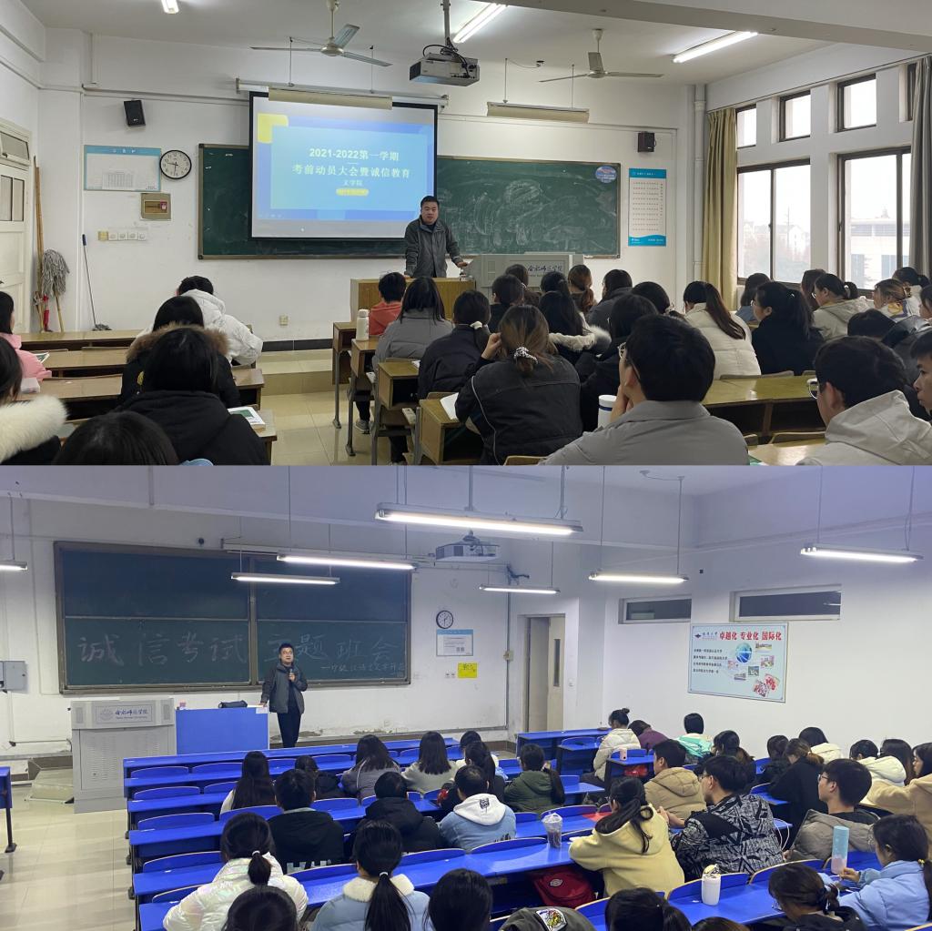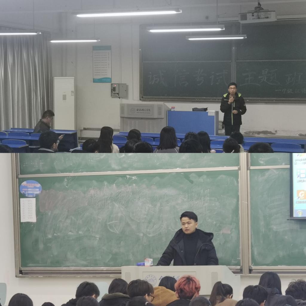 本网讯 期末考试将近,为进一步敦促学生认真复习,做好考试相关准备,加强学风建设,严格考试管理,严肃考试纪律,促进优良学风的形成,12月13日-12月17日期间,我院全体辅导员陆续在各班级开展了“诚信教育暨安全教育”的主题班会。