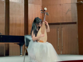 如:古筝协奏《海之波澜》、重奏《盛世国乐》,琵琶独奏《霸王卸甲》、重奏《阳春白雪》,竹笛独奏《苍》、齐奏《游击队歌》,二胡独奏《蒙风》,长笛、黑管、钢琴《莫扎特三重奏》,木管重奏《肖斯塔科维奇第二圆舞曲》,弦乐四重奏《茉莉花》等,体现了本场艺术实践的特色。在汇报音乐会上,器乐系教师到场观看。