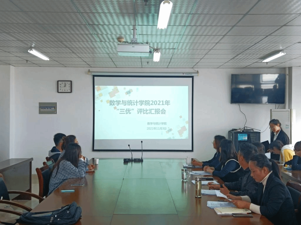本网讯 为表彰先进、发挥典型示范作用,进一步增强数学与统计学院学风建设,11月3日数学与统计学院在行知楼1102室召开2020-2021学年“三优”评比汇报会,学院党委书记郑支农、副书记陶金昌参加了汇报会,学院辅导员和学生代表担任活动评委。