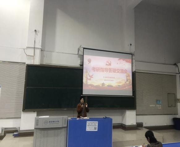 本网讯 为帮助毕业班考研学生解决实际问题,指导他们高效备战,缓解考前压力,提高成功率,进一步推动“为师生办实事”实践活动走深走实。11月8日中午,生命科学学院在逸夫楼西阶一教室开展毕业班考研指导答疑交流会。出席会议的有生命科学学院党委书记郭桃芬、副书记杨娜。指导答疑由教工党支部书记王占军、陈金武、方雪以及党员教师程诚、杨星星五位老师主讲。交流会由2018级辅导员杨帆主持,2018级一百余名学生参加。