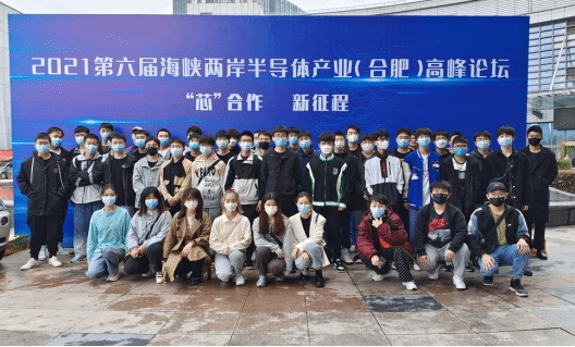 本网讯 10月22日,以“‘芯’合作 新征程”为主题的2021第六届海峡两岸半导体产业(合肥)高峰论坛在合肥举行。本次论坛由国务院台湾事务办公室经济局、中国半导体行业协会指导,合肥市人民政府、安徽省发展和改革委员会、安徽省经济和信息化厅、安徽省人民政府台湾事务办公室主办,合肥市发展和改革委员会、合肥市经济和信息化局、合肥市人民政府台湾事务办公室、安徽省半导体行业协会、合肥市半导体行业协会承办,合肥高新技术产业开发区、合肥经济技术开发区、合肥新站高新技术产业开发区、合肥国家芯火双创平台、合肥市产业投资控股(集团)有限公司协办。我校电子信息与电气工程学院微电子系教师和2019级微电子科学与工程全体学生参加本次论坛并观摩学习。