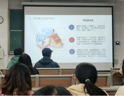 会上,各年级辅导员主要围绕什么是学风、为什么要树立优良学风、不良学风的表现以及如何树立优良学风四个方面展开介绍。辅导员们结合实际案例,深入分析不良学风的具体表现,以及由此产生的系列不良后果,要求每位同学不仅要对照自身表现,严以律己,认真遵守课堂纪律,行为举止文明,同时也要不断提高学习积极性,多读书,长才干。