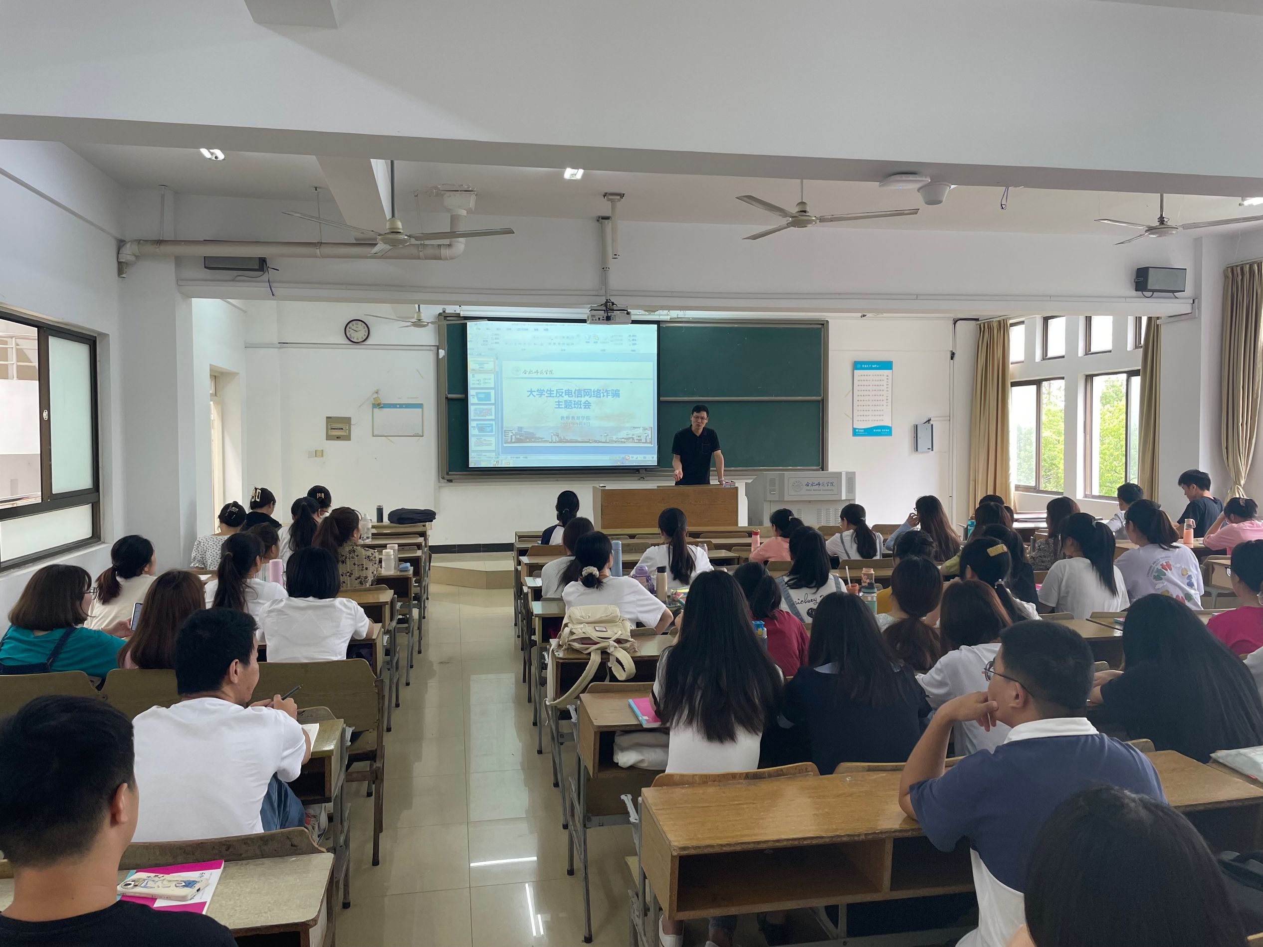 辅导员董丹丹于9月8日在滨湖校区开展了反诈安全教育主题班会。(教师教育学院:屠家宝 顾锦锦)