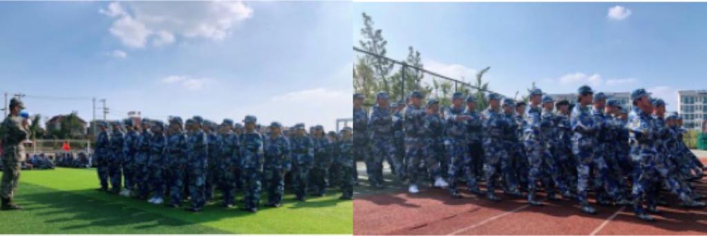 军训期间,骄阳似火。在教官的严格指挥下,同学们踏着严谨统一的步伐,喊着铿锵有力的口号,整齐有序地操练队列,刚强有力地练习军体拳,每一次立正、稍息、转体、齐步走都力争高标准、严要求的完成,赢得教官的认可和赞许。