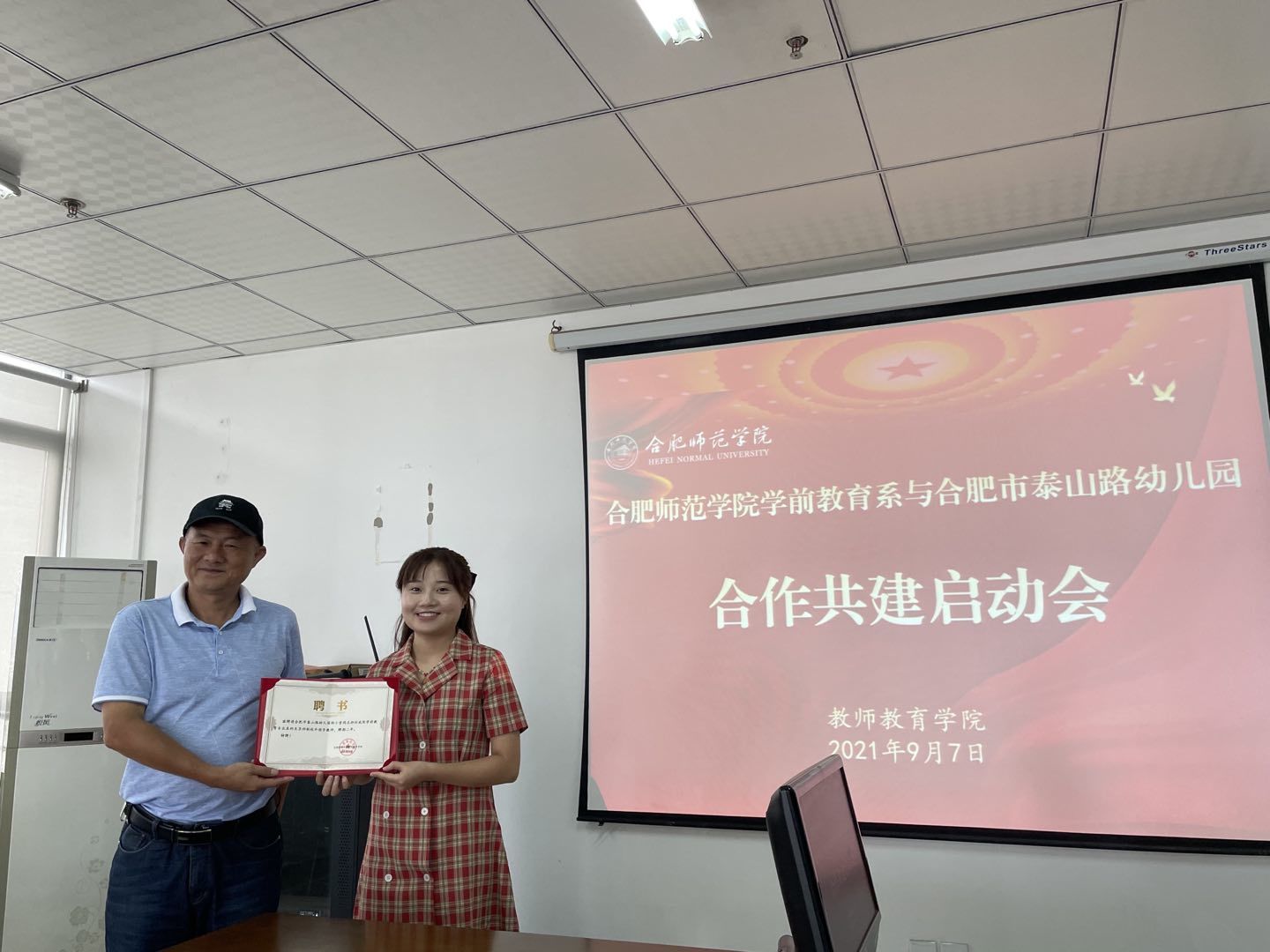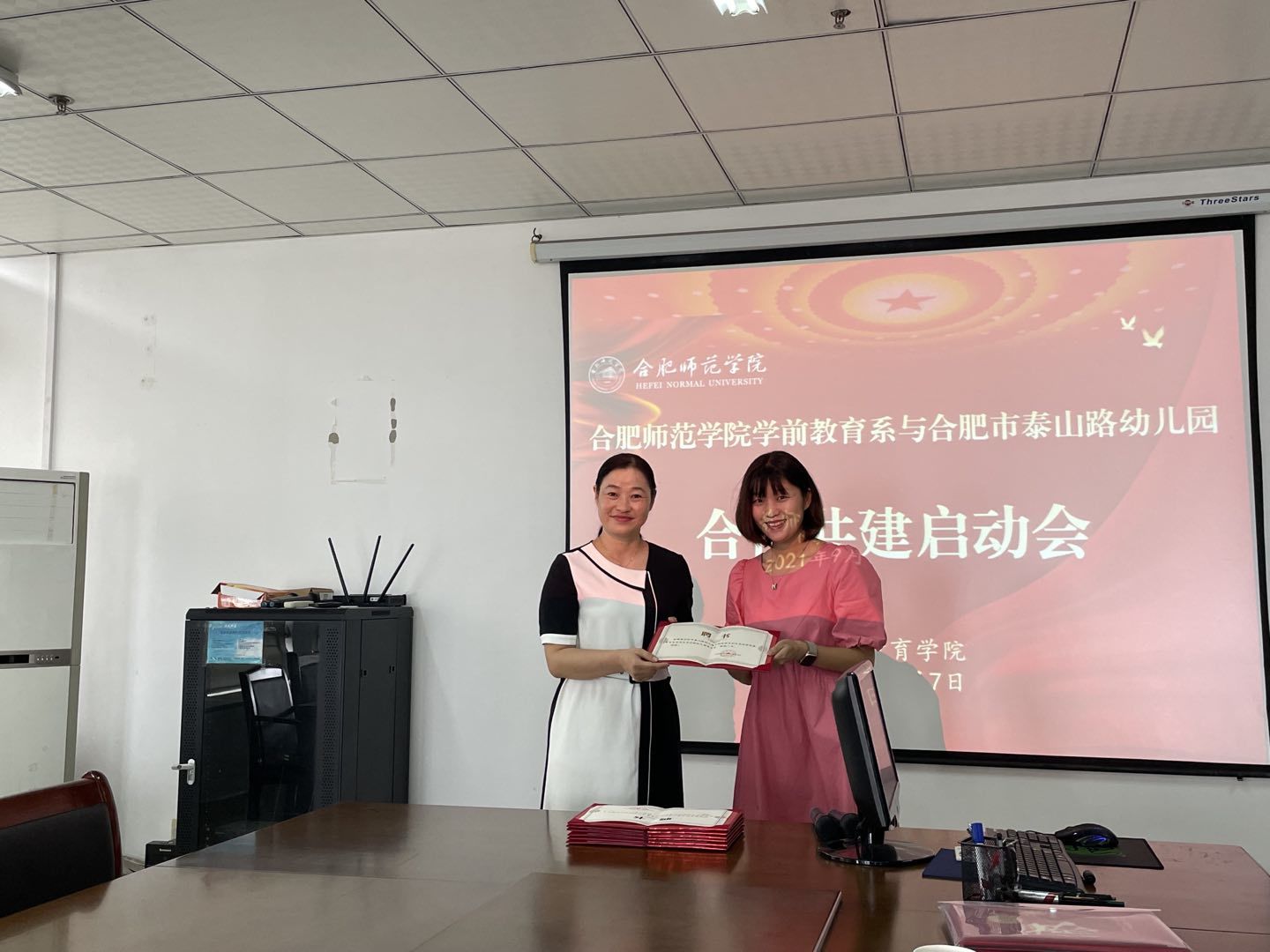 本网讯 9月7日上午,beat365唯一官方网站教师教育学院学前教育系与合肥市泰山路幼儿园合作共建启动会在行知楼710举行。教师教育学院党委书记穆娟、副院长闫龙、学前系学科带头人胡连峰、学前系教师李辉,合肥市泰山路幼儿园园长华琳琳,教学主任徐晓,后勤主任秦蓉和骨干教师等参加启动会。