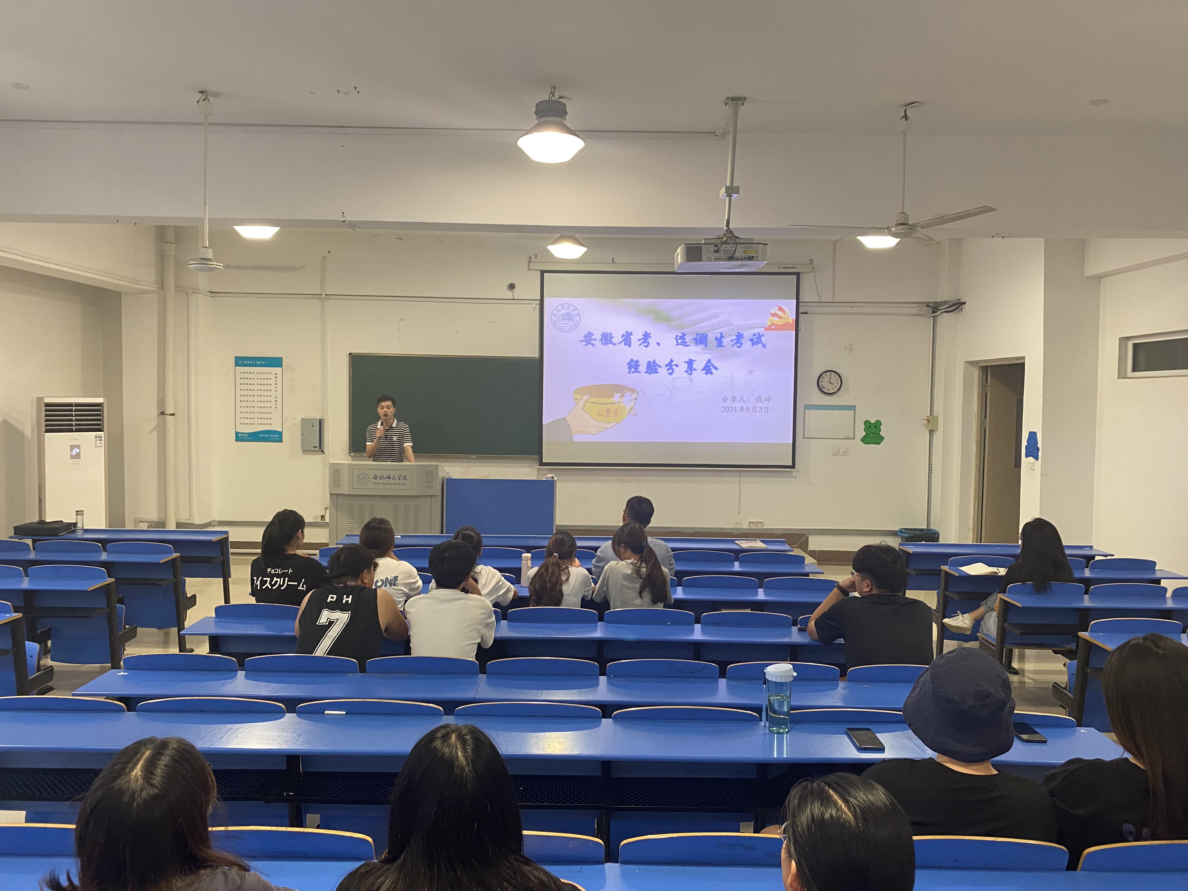 本网讯 9月2号下午,文学院邀请2021届汉语言文学(师范)班学生党员钱坤做“公务员及选调生考试经验交流会”,2018级学生参加交流会。