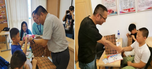 开班仪式结束后,学院领导来到教室,了解小学员们的暑期学习、生活情况,与“小先生”、小学员们亲切交谈,随后还给小学员们发放了学习用品和小礼物。