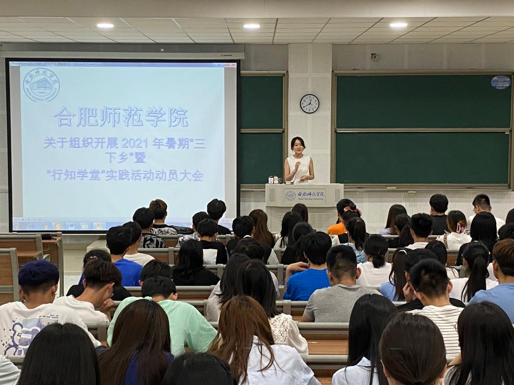 本网讯 为鼓励学生在实践中学习党史、践行社会主义核心价值观,在实际行动中献礼建党一百周年,进一步落实学校《关于组织开展2021年暑期“三下乡”暨“行知学堂”实践活动的通知》文件具体内容,6月23日,经济与管理学院在滨湖校区博学楼A108教室组织开展2021年暑期三下乡暨“行知学堂”实践活动动员大会。本次动员大会由学院分团委老师赵燕进行指导,20级财务管理班安馨梦同学和19级财务管理班司宇同学主持,2019级、2020级班长和团支书记以及学院团委组织全体成员参会。