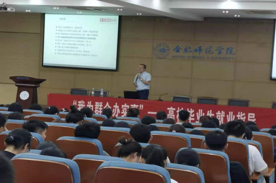 本网讯 6月17日晚,外国语学院在锦绣校区学术报告厅召开毕业生就业创业专题指导讲座。本次讲座邀请了教育部首批全国优秀创新创业导师、第十四届安徽省大学生职业规划设计大赛评委宋敬老师主讲,我院毕业班辅导员及2018级学生300余人参加了此次讲座。
