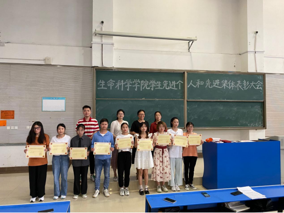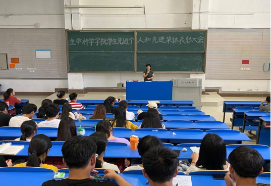 本网讯 为了激发同学们创先争优意识,更好地促进学院学风建设,6月15日中午,生命科学学院在锦绣校区逸夫楼西阶二教室举行先进个人和先进集体表彰大会暨优秀学生励志报告会。生命科学学院党委书记郭桃芬、副书记杨娜、辅导员黄伟丽、高欢、黄洁、杨帆出席会议,受表彰学生和2020级全体学生参加了会议,会议同时邀请了2017级国家奖学金获得者王香存和2018级国家励志奖学金获得者胡洁、曹家玲三位优秀学生做励志报告,会议由辅导员高欢主持。