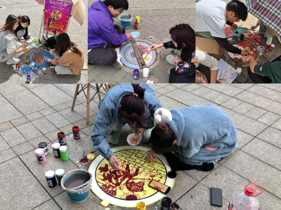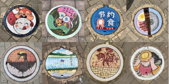滨湖校区桂园食堂附近的井盖是此次彩绘活动的“主展场”,艺传学子利用手中的画笔与颜料,用绘画语言将“爱惜粮食,厉行节约”的理念通过井盖彩绘传递给每一位食堂就餐的师生。一个个原本不起眼的井盖换上了美丽的新装,为校园增添了一道亮丽的风景线。