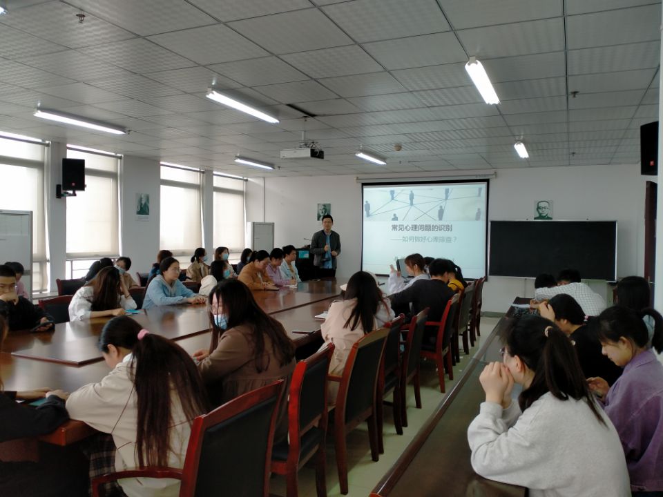 最后屠家宝解读了学校心理健康多级工作制度,强调心理委员、寝室长是学生心理健康工作的排头兵,是朋辈辅导的主力军。会议上进一步明确了生活委员、心理委员以及寝室长关注班级同学心理健康状况的必要性,并对常见心理障碍的识别做了专题培训。如:抑郁症、焦虑症、狂躁症等的表现与初步干预。