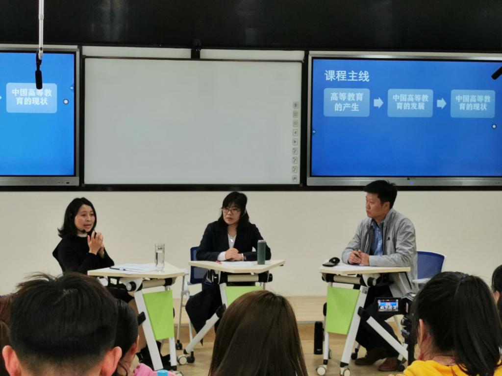 本场讲座以习近平总书记考察清华大学的视频作为开场,围绕“高等教育的产生——中国高等教育的发展——中国高等教育的现状”这一主线,三位老师用轻松愉悦的聊天式座谈,带领同学们从近代的蔡元培、张伯苓、梅贻琦,到新中国成立后中国高等教育的调整;从1977年重新恢复高考,到改革开放后211、985战略;从新时代中国高等教育的成就到“双一流”时代中国高等教育的未来走向。同学们跟随着老师们座谈的思路,一同走过了中国高等教育发展的百年历程。
