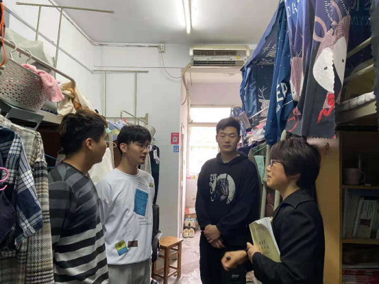 4月20日,在音乐学院党总支副书记蔡成梅的带队下,班主任、辅导员逐步的、分层次的深入到宿舍,开展集体走访。在走访的过程中,蔡成梅要求辅导员、班主任,腿要勤,不漏访学生宿舍,尤其关注混合宿舍和问题宿舍;眼要尖,从宿舍的环境中能够分析学生是否长期没在宿舍住宿,是否违规用电,是否厌学、懒学;心要暖,对于“后进”的宿舍或者个人,我们要多问几句,多了解情况,多帮助教育,共同分析“后进”的原因,一起规划发展方向。