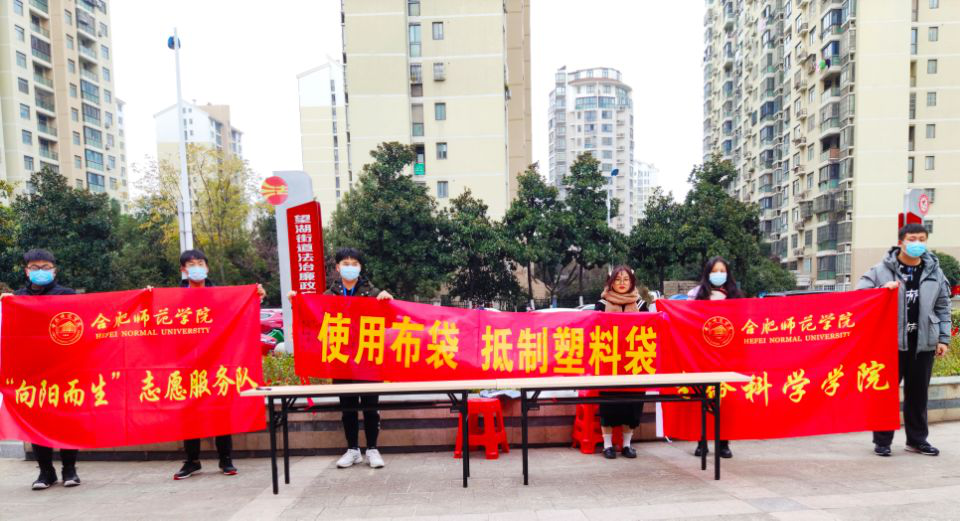 本网讯 为积极培育和践行社会主义核心价值观,进一步弘扬“学习雷锋、奉献他人、提升自己”的志愿服务理念,引导广大群众提高绿色生活意识、积极参与环境保护。生命科学学院“向阳而生”志愿服务队,于12月13日上午联合望湖社区开展了以“拒绝塑料袋、使用布袋”为主题的志愿服务活动。